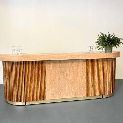 Hosting a cocktail party? Check out our compact bars like the Pop-Up Gin Bar. For events requiring a wider selection, a fully functional bar with shelving, such as the Woodley Flute Bar, is ideal.