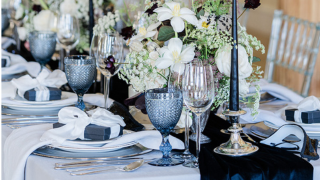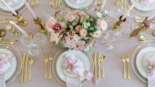 ✨ CaterHire pick: Gold-Rimmed Crockery, Mother of Pearl Cutlery, Glass Charger Plates