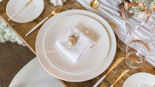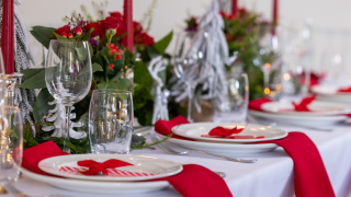 - Crockery: White plates are timeless and versatile, but for a festive upgrade try gold-rimmed crockery or Wedgwood fine dining ranges.