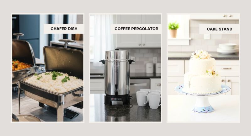 - Chafing dishes to keep food warm