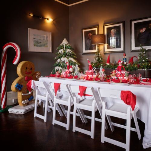 Perfect for anyone with a sweet tooth, a Candy Cane Lane theme is all about embracing the sweet treats of the festive season. Focus on classic hues like red and white. You may also wish to incorporate pastel shades. Dot our Giant Candy Cane on Stand around your space to evoke the ultimate candy land, and why not add our Gingerbread Boy and Gingerbread Girl? If you’re dining, we recommend a red or white tablecloth, and centrepieces such as gingerbread houses. No Candy cane theme would be complete without a sweets table, where you can let your imagination run wild with lollipops, peppermint candies and more!