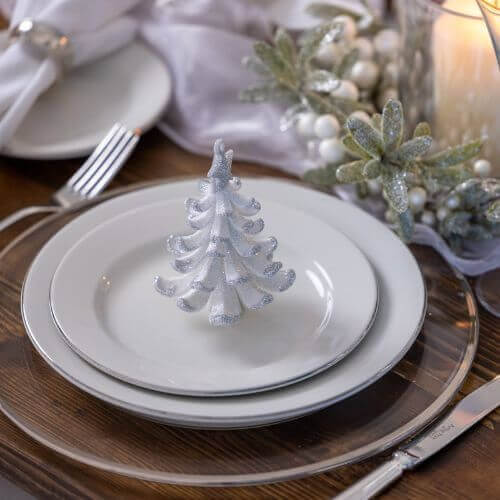 This theme is ideal if you want a classic, timeless vibe. Consider greens, reds and golds as your main colours to invoke a warm, cosy feel, and include traditional Christmas elements such as berries and pinecones, which can be incorporated into wreaths. For textures, velvet is a festive classic. Add our Giant Green Gift Box, Santa With Lantern and Lamp Post with Snow for a traditional-inspired winter village.