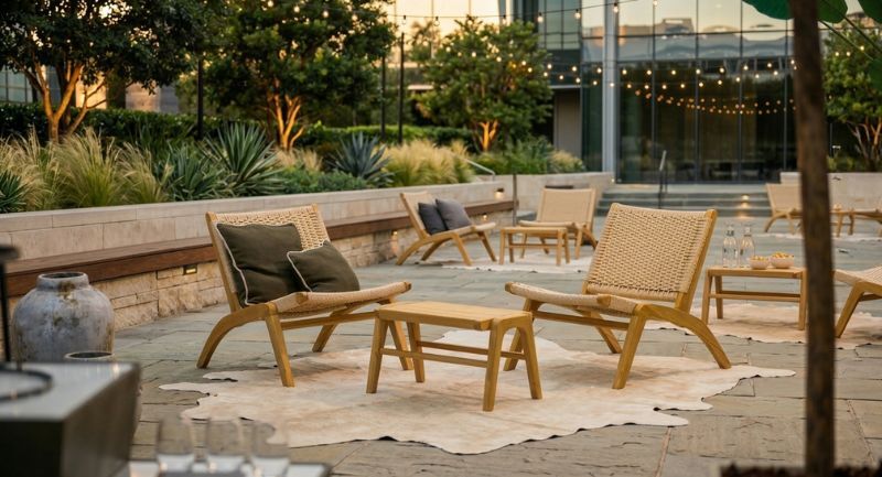 Perfect for corporate events, parties, and stylish event settings, the Woodley Collection combines natural materials, durability, and timeless design.